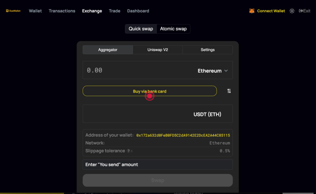 Swap Bitcoin, Ethereum, USDT, and other top cryptocurrencies instantly. Experience fast, secure, and low-fee trades directly from your wallet.